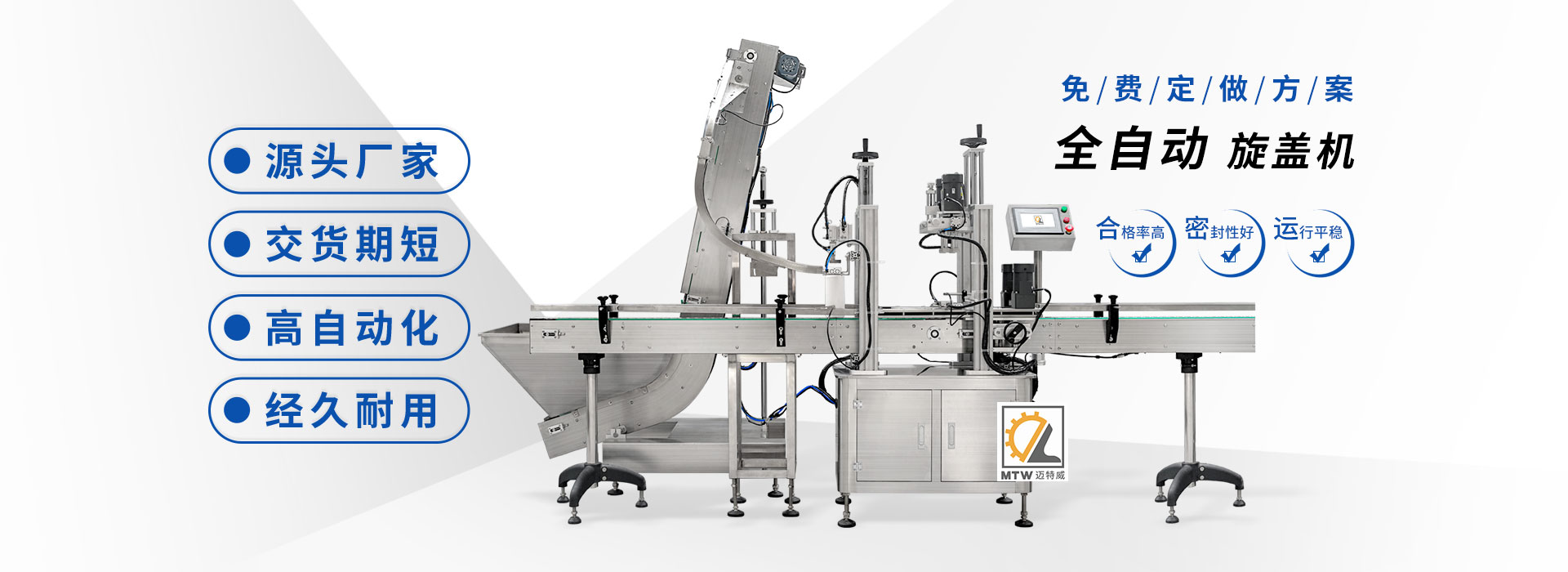 邁特威自動(dòng)化設(shè)備(天津)有限公司坐落于素有京津明珠之稱的天津·武清區(qū),是國(guó)家高新技術(shù)企業(yè),專注生產(chǎn)、研發(fā)、銷售全自動(dòng)灌裝機(jī)、旋蓋機(jī)、封口機(jī)、貼標(biāo)機(jī)等系列產(chǎn)品,立足京津冀、服務(wù)全國(guó),遠(yuǎn)銷海內(nèi)外,團(tuán)隊(duì)由行業(yè)高技術(shù)人士組成,為國(guó)內(nèi)外食品、日化、糧油、醫(yī)藥等企業(yè)提供滿意的包裝解決方案。 查看詳情
